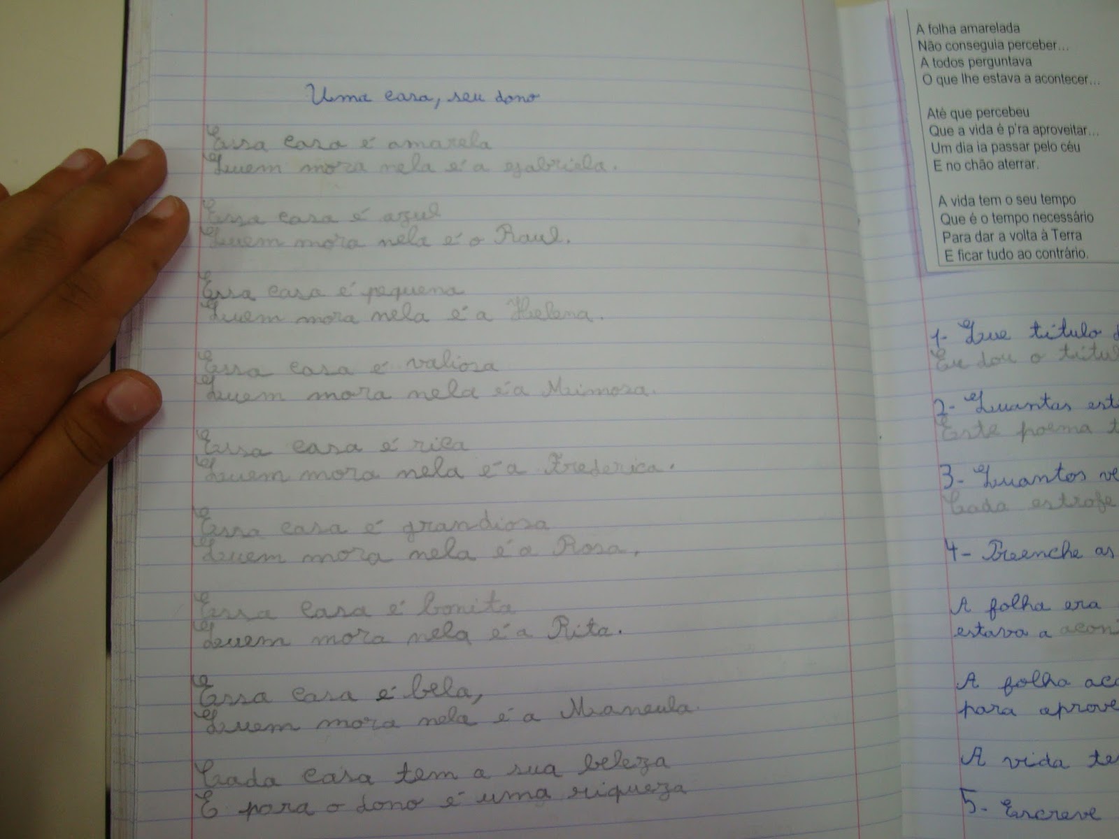Com base na estrutura do poema que lemos, escrevemos outros... Foi ótimo colocar a nossa criatividade a funcionar e, depois, podermos ler poemas da nossa autoria!... Ora leiam...