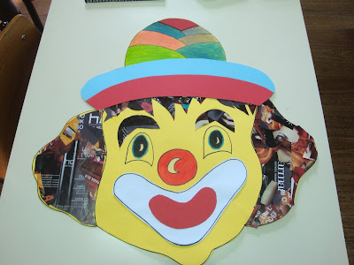 Hoje tivemos um dia muito divertido, pois aprendemos brincando!... Imaginámos ser diversas personagens e escrevemos belos poemas! Construímos também dois palhaços gigantes: um para o painel da nossa sala de aula e outro para o painel coletivo da escola! Para fazermos esses palhaços, utilizámos diversos materiais e diferentes técnicas.