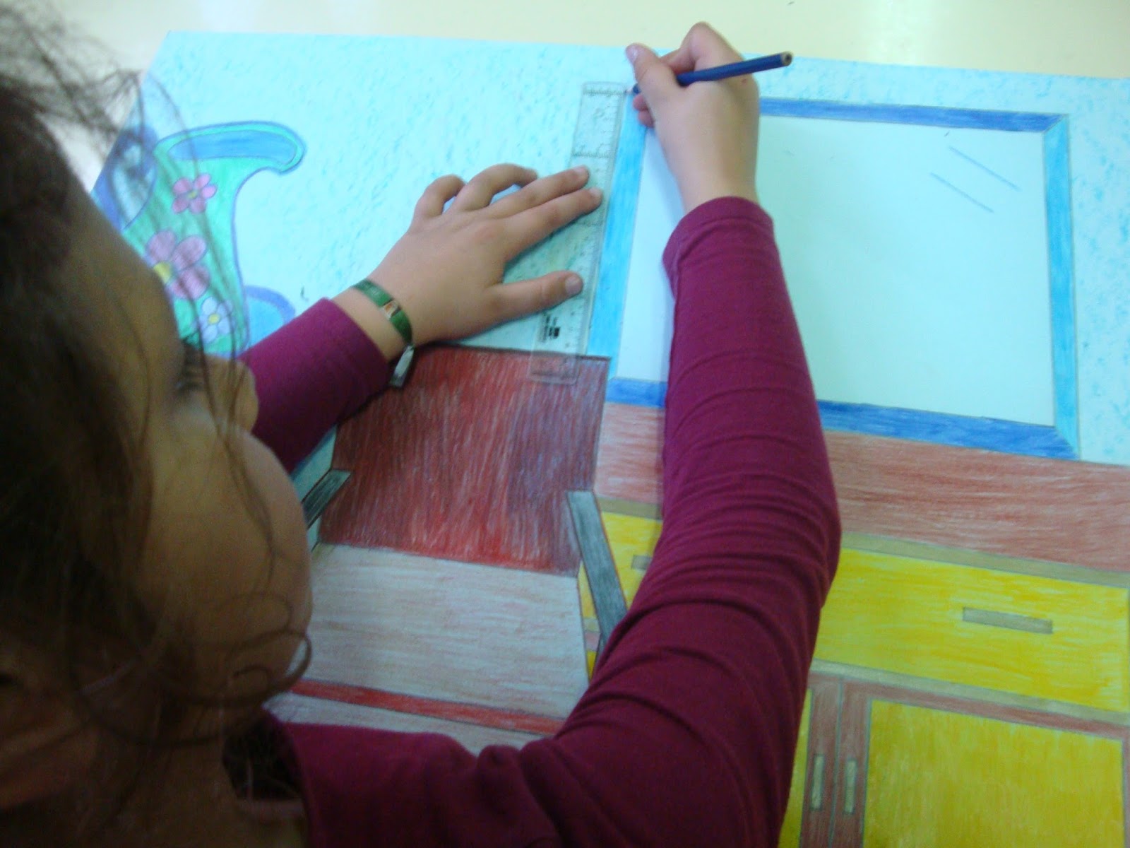 Hoje resolvemos dedicar a aula de Expressões Artísticas ao símbolo do AMOR e da AMIZADE: o CORAÇÃO. Por isso mesmo, cada um de nós começou por fazer um caligrama (tipo de poema visual que se expressa através de uma original disposição gráfica do texto escrito, representando um símbolo, objeto real ou figura que é a própria imagem principal do poema). Depois construímos corações, utilizando a técnica do “origami” ("Origami" é uma técnica japonesa, uma arte de dobrar papel, sem fazer cortes, para criar objetos e outros seres.).