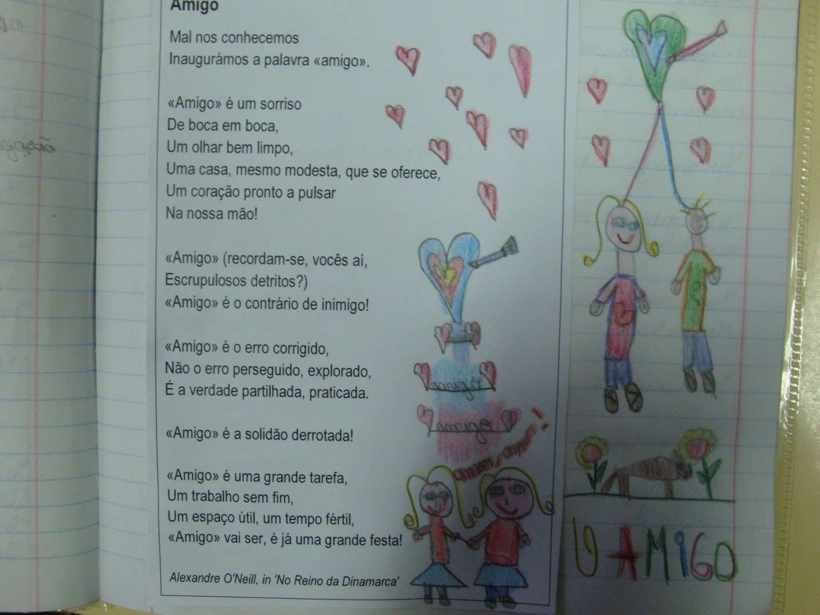 O AMOR é partilha, sinceridade, amizade, carinho, apoio, respeito, felicidade, convívio… Viver com afetos é viver mais feliz!... É isso mesmo que nos diz Alexandre O’ Neill no seu poema «Amigos», o qual estivemos a explorar.