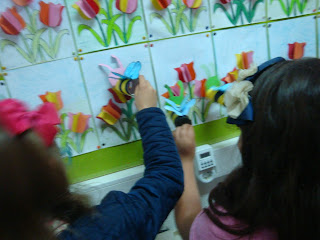 A mãe da Gabriela teve uma excelente ideia!... Arranjou-nos saquinhos feitos em tecido e nós estamos todos entusiasmados a decorá-los!... Desenhar e pintar em tecido é bem divertido!... Nós estamos a adorar os “nossos saquinhos”!...